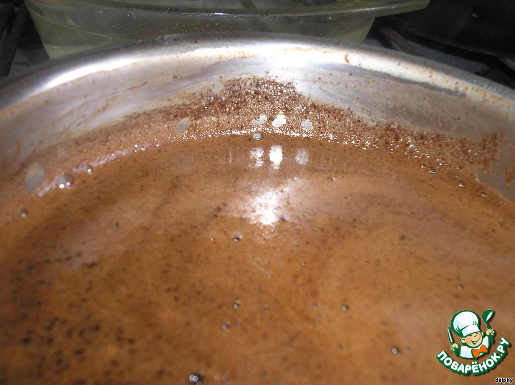 Сахар насыпать на дно кофейника и поставить на огонь. Нагревать, пока сахар не приобретет коричневый оттенок.