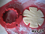 Готовое тесто выложить на подпыленный мукой стол и раскатать толщиной 4-5 мм. Вырезаем любым удобным методом.