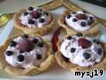 Теперь наполняем тарталетки кремом и украшаем ягодами по желанию. Надеюсь, вам придется по душе такой вариант. Приятного аппетита.