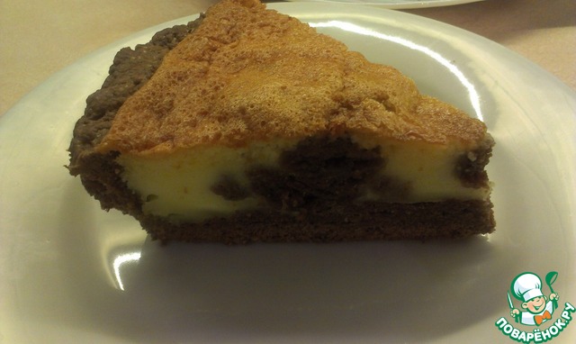 Этот пирог пекла на 1 Мая. Очень понравился на вкус. Шоколадно песочная основа и нежное творожное суфле. Для любителей творожных сладостей. Пирог получается очень вкусным, сытным и не опадает. Рецепт взят на кулинарной лиге.