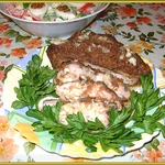 [+5]У меня было филе бедра. После маринования в соусе, обжарила в сухарях, воду не добавляла, а залила чесночным соусом и оставила на 5-мин. под крышкой на небольшом огне. Очень здорово, мне всё понравилось.