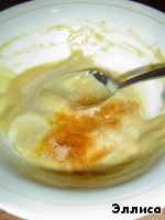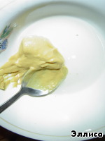 Через час процеживаем изюм, в настой добавляем горчицу, растертую с оливковым маслом, уксус, карри, перец и соль.