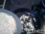 На разогретую сковороду наливаем немного растительного масла и слегка поджариваем мелконарезанный чеснок