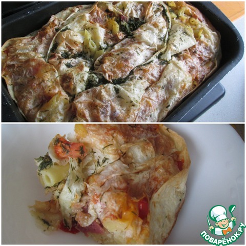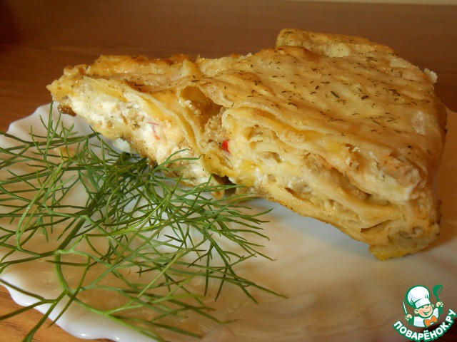 Когда я попробовала это блюдо в первый раз, то не сразу сообразила, из чего приготовлено... Очень похоже на слоеное тесто... а на самом деле.. все намного проще