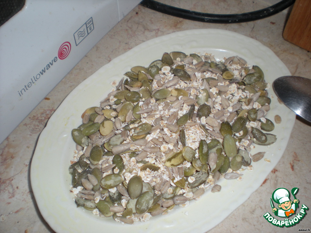 смешиваем в тарелочке все семечки, которые остались, и хлопья