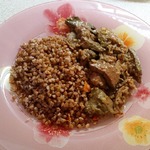 Подавать можно с любым гарниром. Я подала с отварным рисом.