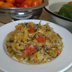 Ставим в духовку. Смотрим, насколько капуста сочная. Если не очень, подливаем водички. Через 30 -40 минут кладем помидоры (или томатную пасту), приправы и зелень. Когда капуста и овощи станут мягкими - готово.