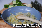 Лук крупно нарезать, чеснок очистить и расплющить, спассеровать на растительном масле до мягкого и прозрачного состояния, не позволять подрумяниться.