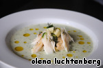 Для сервировки положить в центр тарелки несколько ложек огуречно-рыбной смеси, залить охлажденным супом-пюре. Можно украсить капельками хорошего оливкового масла – не только красиво, но и полезно. Приятного аппетита!