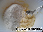 Муку смешаем с разрыхлителем и добавим в полученную массу.