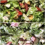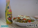 посолить, поперчить, заправить оливковым маслом и лимонным соком и перемешать.