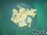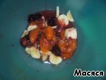 Фрукты очистить от косточек и добавить к банану, положить ложечку варенья.