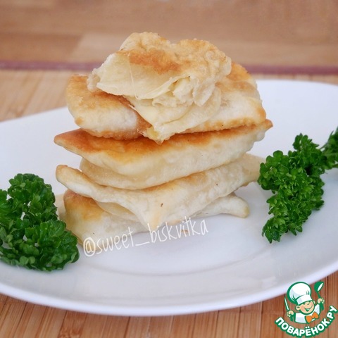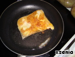 И прямо с тарелки, как бы соскальзывая, опускаем конверт в нагретое растительное масло. Жарим с двух сторон до золотистой корочки.