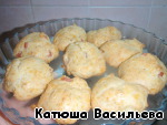 Выпекайте в духовке 10 мин при 220 гр., затем уменьшите жар до 180 гр. и выпекайте еще минут 15 - 20, пока булочки не станут золотистыми. Для тех, у кого в духовке нет термометра, хочу сказать, что я пекла все время на одной температуре и все получилось замечательно. -