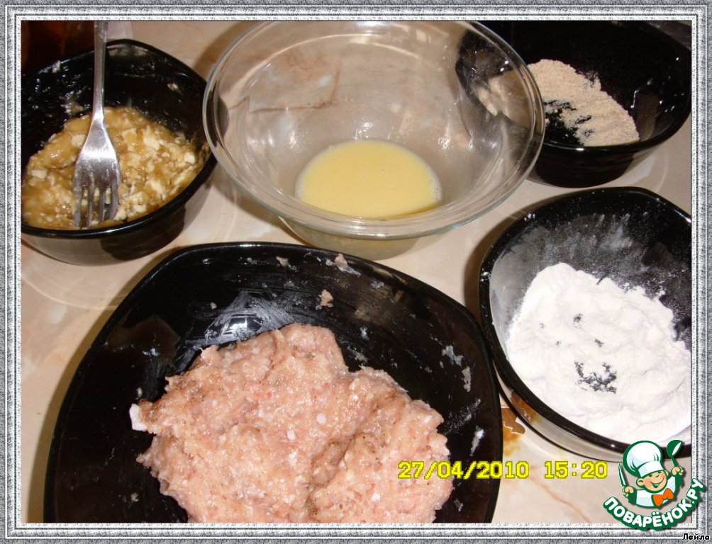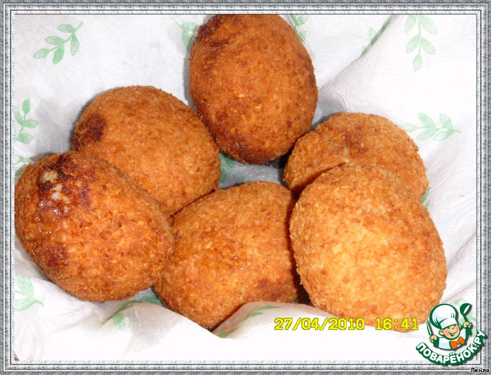 1-ая панировка - обвалять шарики в муке, яйце и сухарях.