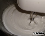 Небольшими порциями начинаем вводить сахар, продолжая взбивать. С последней порцией сахара добавляем 0.5 ложки ванильного сахара.