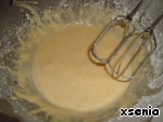 Белки взбиваем отдельно и вводим белковую пену в тесто. Тот же противень, на которым выпекали безе, застилаем промасленной пекарской бумагой. Выливаем тесто и ставим в разогретую до 180 градусов духовку на 13-15 минут. -