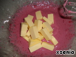 Добавляем размягченное сливочное масло. Взбиваем, пока крем не станет блестящим (минут 5).