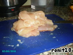 Куриные грудки режем на пласты вдоль и погружаем в полученный соус.