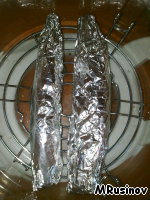 Фольгу заворачиваем и выкладываем на нижнюю решетку в аэрогриль.