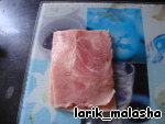 Теперь начинка. Берем колбасу или ветчину, нарезаем на ровные доли. Если у вас колбаса, то это еще лучше - просто нарезать тонкими ломтиками и все! -