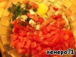 Мелко нарезать: куриную грудку, помидоры, укроп, чеснок,