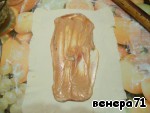 С каждой стороны сделать одинаковые надрезы и завернуть концы, смазывая водой (не знаю, как объяснить, смотрите на фото)
