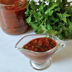 Получившуюся заготовку развести томатным соком или просто кипяченой водой до нужной густоты. Если соус готовите для застолья, можно разделить его на две части, в одну добавить больше перца для любителей остренького, другую сделать менее жгучей.