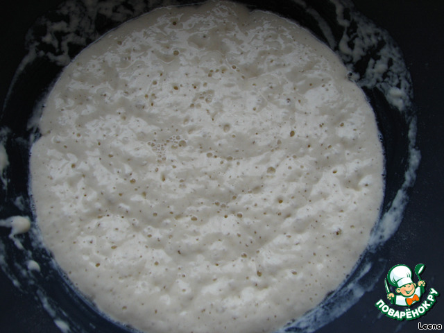 Добавляем стакан муки, 3 ст.л. сахара, щепотку соли, перемешиваем. Накрываем крышкой. Забываем на полчаса.