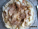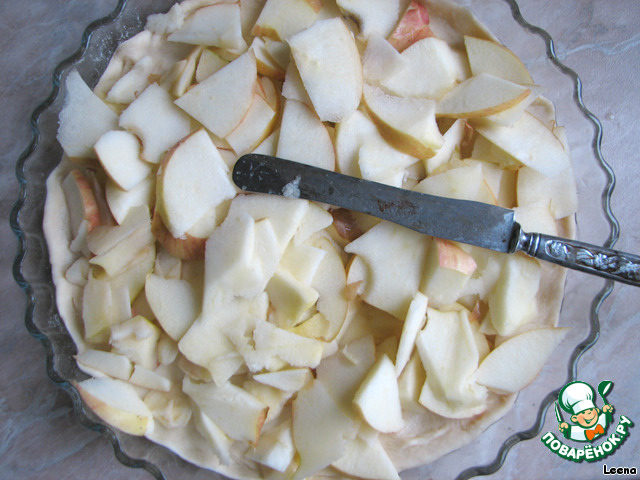 Яблоки произвольно нарезаем и разбрасываем по тесту.