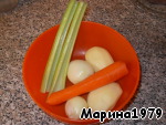 Добавляем нарезанный картофель, сельдерей и зажарку. Варим все 10 минут, а пока делаем квадратики.