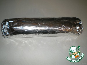 Жареную печень с луком прокрутить на мясорубке 2-3 раза. Паштет раскатать тонким слоем на фольге, сверху паштет смазать слоем мягкого сливочного масла и скрутить рулет.