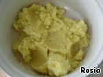 Картофель почистить, сварить, полностью слить воду, сделать пюре.