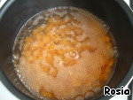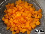 Морковь почистить, нарезать кубиками. Сварить. Слить воду.