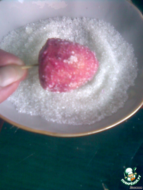 Сверху посыпать кунжутом, имитируя зернышки клубники (я этого не делала).