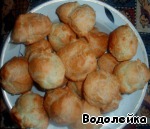 Дальше выпекаем эклеры. Выложить тесто в виде небольших шариков на противень, застеленный пекарской бумагой (но у меня ее не было, поэтому я выкладывала просто так). Выпекать при температуре 150-180* до готовности. По времени это у каждого будет по-разному, все зависит от духовки. У меня ушло не менее 30 минут.