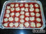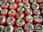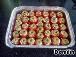 Начиняем наши помидорки и выкладываем в форму для запекания.