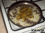Добавляем их к луку и продолжаем жарить.