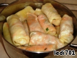 [+4]И в голубцы еще добавила сладкого перчика и грибов, ну и припраки свои. Стояла она у меня в комнате 4 дня. По нашему вкусу само то что надо. Все ингредиенты хорошо промариновались. И заливала не кипятком, немного охладила. Вкусно. Очень хрустящая и ароматная.