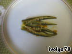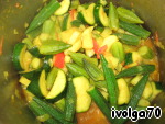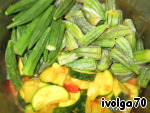 И последний шаг - добавляем окра-бомя-бамия. Я купила ее двух видов, свежую длинненькую и замороженную, видимо разный сорт, маленькую. Чтоб показать, что они бывают разные, но готовятся также.