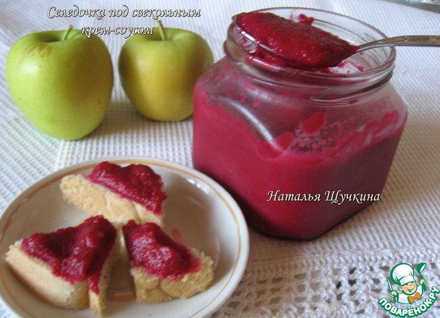 Рецепт «Сельдь под свекольным крем-соусом»: