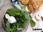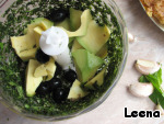А теперь самое интересное - готовим соус. Чеснок, листья петрушки и мяты измельчаем в блендере.