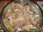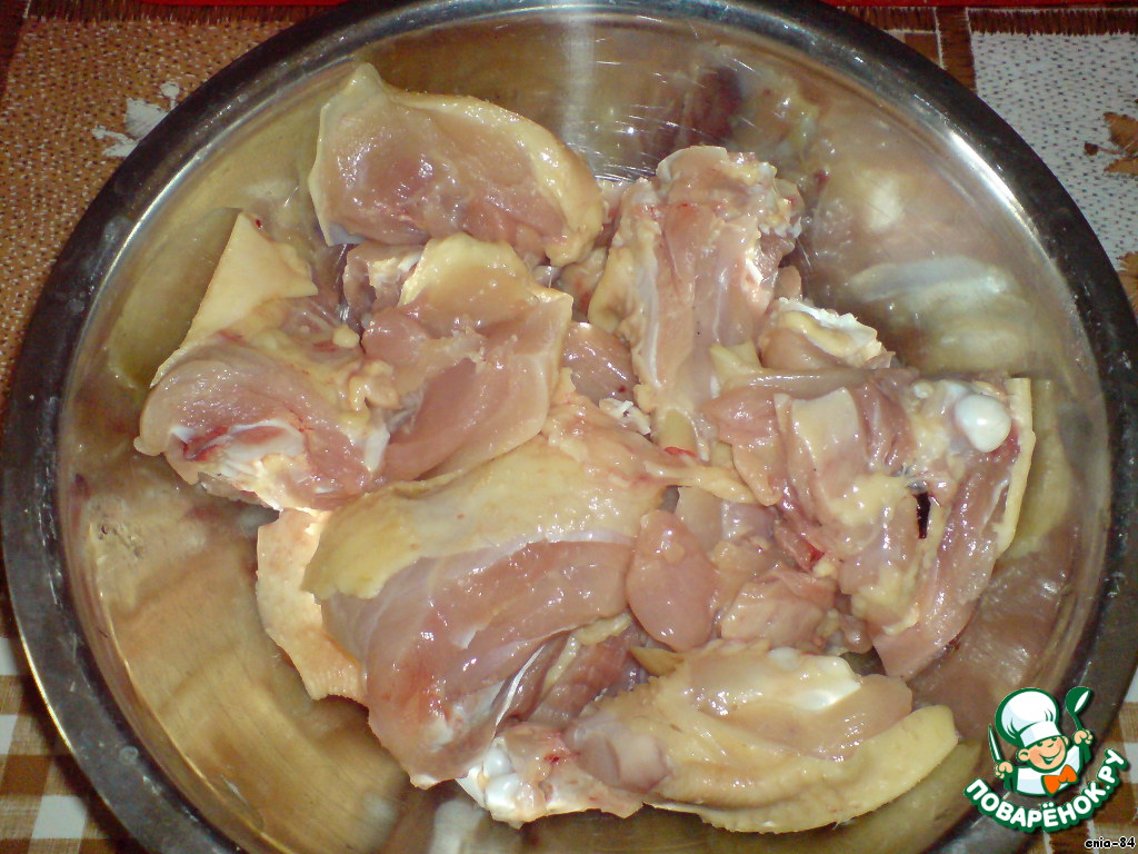 • Курочку нарезать на небольшие кусочки. Посолить и поперчить.