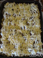 • Сыр натереть на крупной терке и посыпать блюдо.