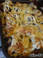 Приготовила курочку по рецепту. Очень понравилось. У меня грибы были свежие и картошку полила сливками 10%. Запекала немного подольше (проверяла картошку - была сырая), поэтому такая загорелая запеканка. Курочка получилась просто замечательная. Спасибо за вкусняшку!