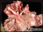 Промыть кости, положить в холодную воду, довести до кипения и снять пену, варить бульон около часа (до готовности мяса).