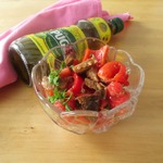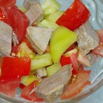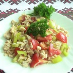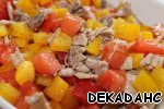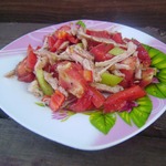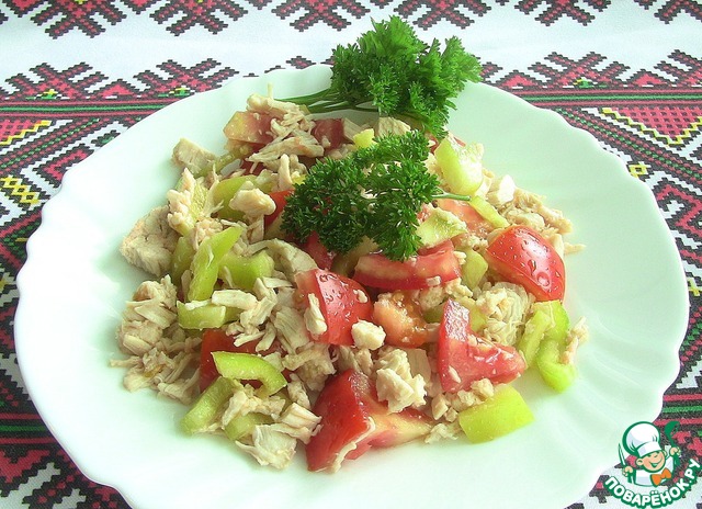 Этот салат я попробовала на аэродроме "Борки", название оставила идентичное, поскольку не смогла придумать нового... Его с удовольствием уплетают все мои родственники: от младшей сестры до бабушек. Вкусный, легкий в приготовлении и пищеварении!