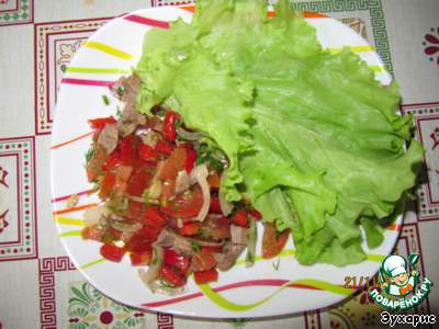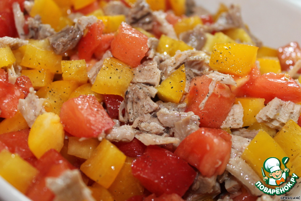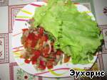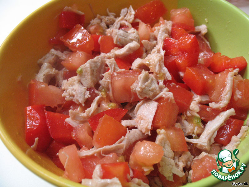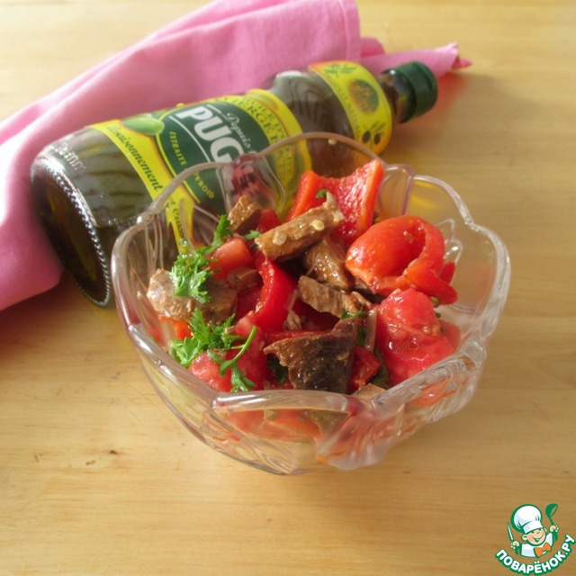 После этого соединяем компоненты, солим и заправляем оливковым маслом