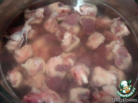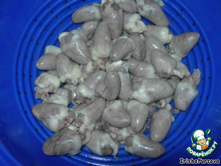 Сердечки откидываем на дуршлаг и обильно промываем холодной водой (в готовом блюде не будет этой противной накипи!)
