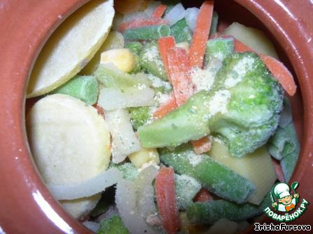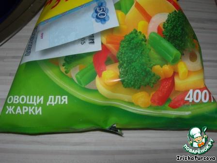 - Овощи (ассорти замороженные, в нашем случае "Для жарки") — 400 г
